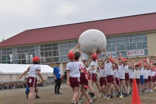 児童の競技では、「全校大玉送り」、「よさこいソーラン」、「大玉送り」、そして、最後の競技の「全校リレー」と全校種目が盛りだくさんでした。スローガン「電光石火 力を合わせて 優勝めざす ほくらっ子」のもと、全校児童が精いっぱい楽しめたスポ~フェスティバルとなりました。
